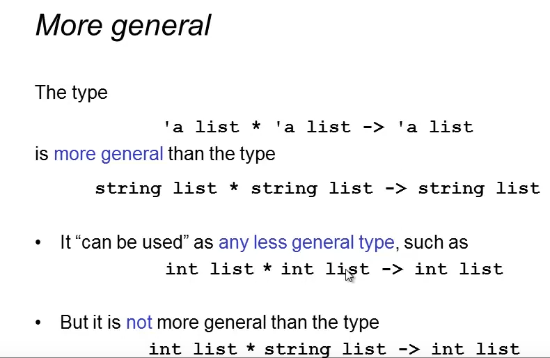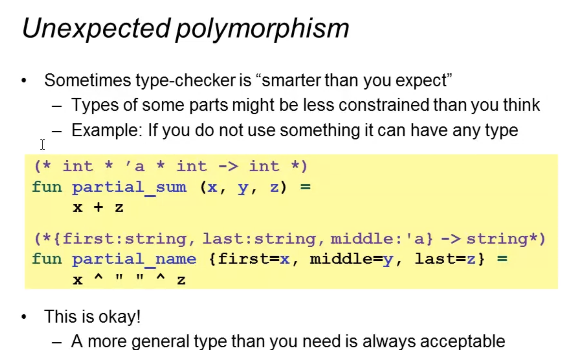 주어진 변수 내에서 몇 개만 사용한다고 했을 때, 함수 본문에 사용되지 않는 변수는 int 같은 타입이 아니라, 좀 더 general한 타입인 'a 이런 식으로 표현이 된다. 괜찮다.