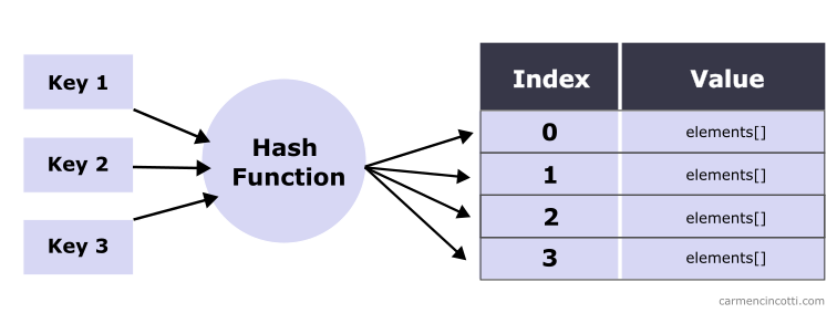 요런 느낌으로, hash function에 따라 키의 주소가 부여되고, 그 주소에 저장되게 된다