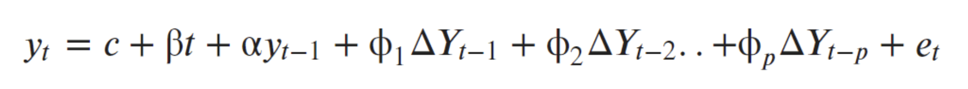 If you notice, we have only added more differencing terms, while the rest of the equation remains the same. This adds more thoroughness to the test. The null hypothesis however is still the same as the Dickey Fuller test.