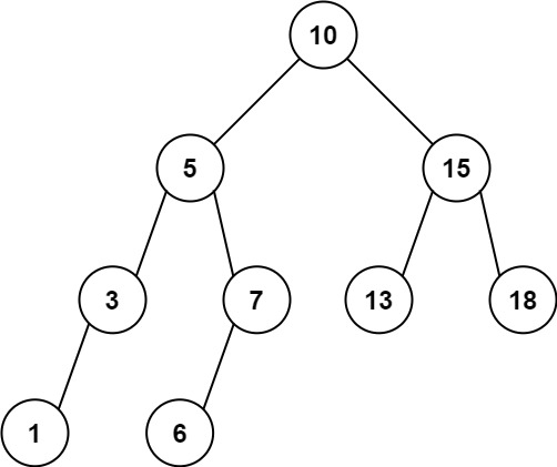 Input: root = [10,5,15,3,7,13,18,1,null,6], low = 6, high = 10