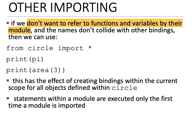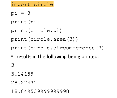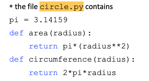 import circle --> circle.area 하는 식으로 불러올 수가 있고
